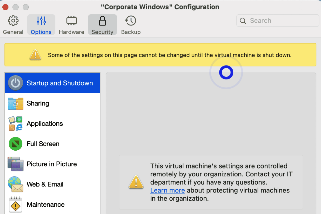 This means that your company's IT administrators are controlling your Parallels Desktop and virtual machine settings remotely and have chosen to disable certain functions and capabilities for improved security or to better match your company's policies.